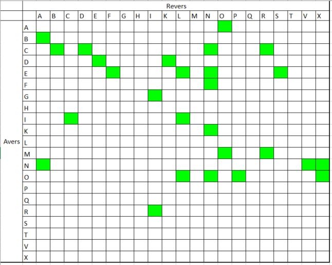 J’ai observé 27 combinaisons différentes. Si à tout hasard, vous possédez un denier avec une combinaison que je n’aurai pas référencé, merci de me le communiquer via le formulaire en bas de la page « Demande d’identification ».