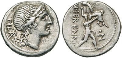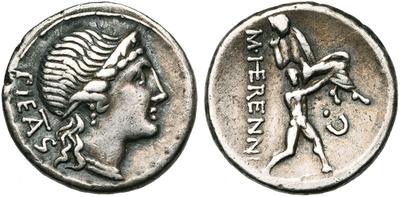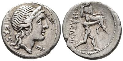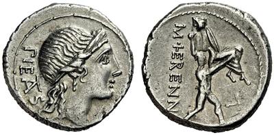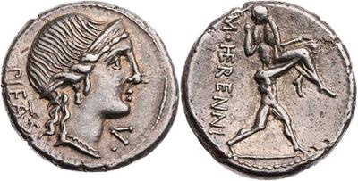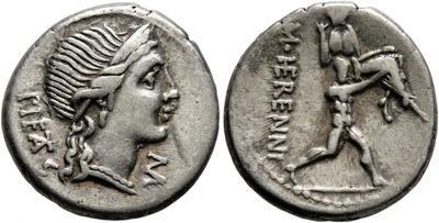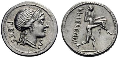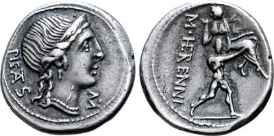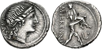 Postérité: Il est très probable que ce monétaire soit le même Marcus Herennius qui deviendra Consul de la République romaine en 93 av. J.-C.