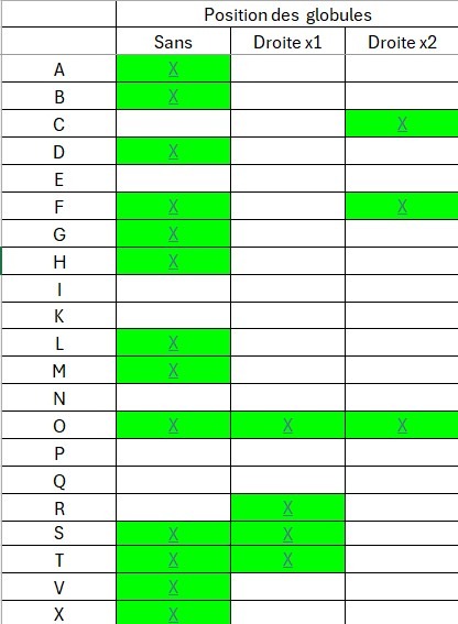 Variante 2 avec lettre de contrôle accompagnée ou non d’un ou deux globules à l’avers. Cliquez le « X » corrsepondant pour en voir l’image.