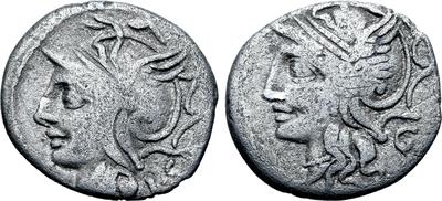 Tête casquée de Rome à gauche. Marque de contrôle derrière la tête.