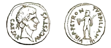 Revers : P PETRON TVRPILIAN IIIVIR  (“P. Petronius Turpilianus Triumvir”, (P. Petronius Turpilianus Triumvir monétaire))