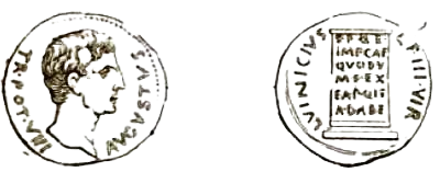 Avers : AVGVSTVS TR POT VIII (Augustus, tribunicia potestate octava)