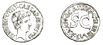 Avers : CAESAR AUGVSTVS TRIBVNIC. POTEST. (Auguste César revêtu de la Puissance Tribunitienne)