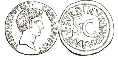Revers : L SVRDINVS IIIVIR A A A F F  (“Lucius Surdinus, triumvir, auro argentum aeri flando feriundo, senatus consulto).”, (Lucius Surdinus, magistrat en charge de la préparation des flans et de la frappe des monnaies de l’or, de l’argent et du bronze par décret du Sénat.))