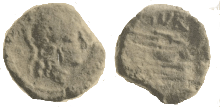 Proue de galère tournée à droite, à droite marque de valeur d’un globule.