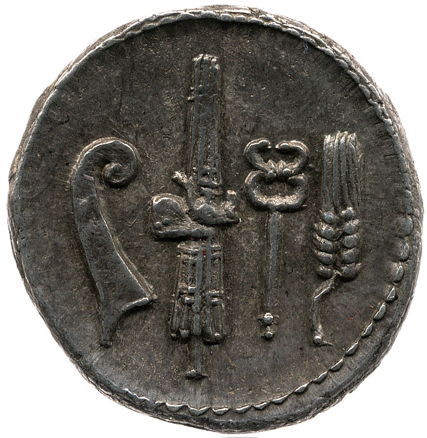 Potin au bucrane // Sesterce Antia 1 _ Qu’est-ce qu’un bucrane ? Il s’agit d’une tête de bœuf décharnée, motif ornemental de l’architecture …