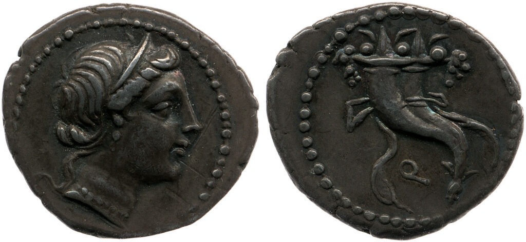 La Corne d’Abondance est un symbole bien connu de l’abondance, de la fécondité, de la fertilité et de la joie. Les Cornes d’Abondance sont très fréquemment représentées sur les monnaies antiques en général et sur les monnaies romaines en particulier. Certains auteurs de l’antiquité ont identifié la corne d’abondance comme étant la corne d’Amalthée, la chèvre nourricière de Jupiter enfant.