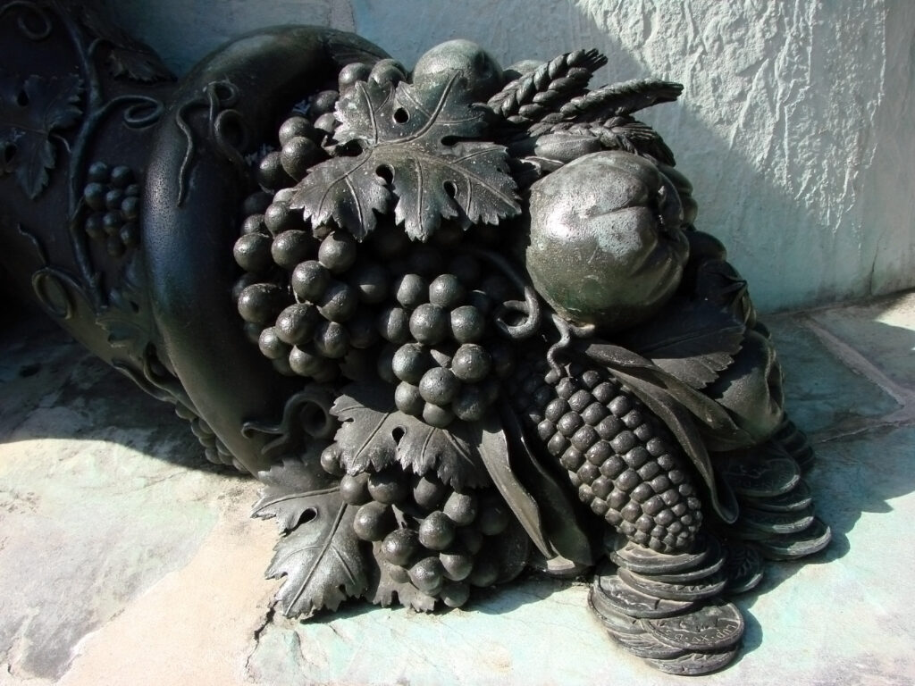 La corne d’abondance (cornu copiae en latin) est un objet mythologique en forme de corne de ruminant ou de coquille de triton utilisé par Ploutos, le dieu grec de la richesse et de l’abondance.